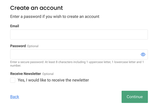 Optionally, you can ask users to fill out a password before confirming the order and thereby making it possible to log in at a later time to follow the status of the order.