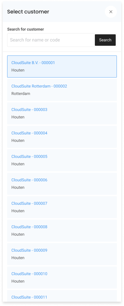 Users are linked to one or more parties (your customers). In case of multiple parties, the default party is selected after login. With the party selector, the user can easily switch between the parties in the webshop.