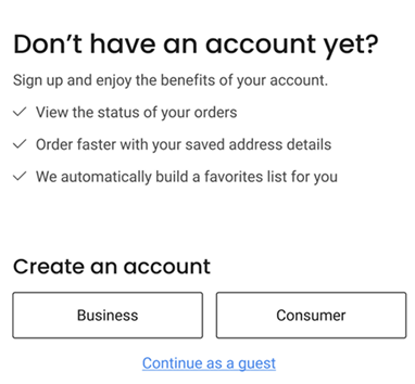 Guest users are very common in B2C shops. You allow your visitors to order without registration using the guest account feature. Only the email address for communication and some personal information is stored, but no account is created.