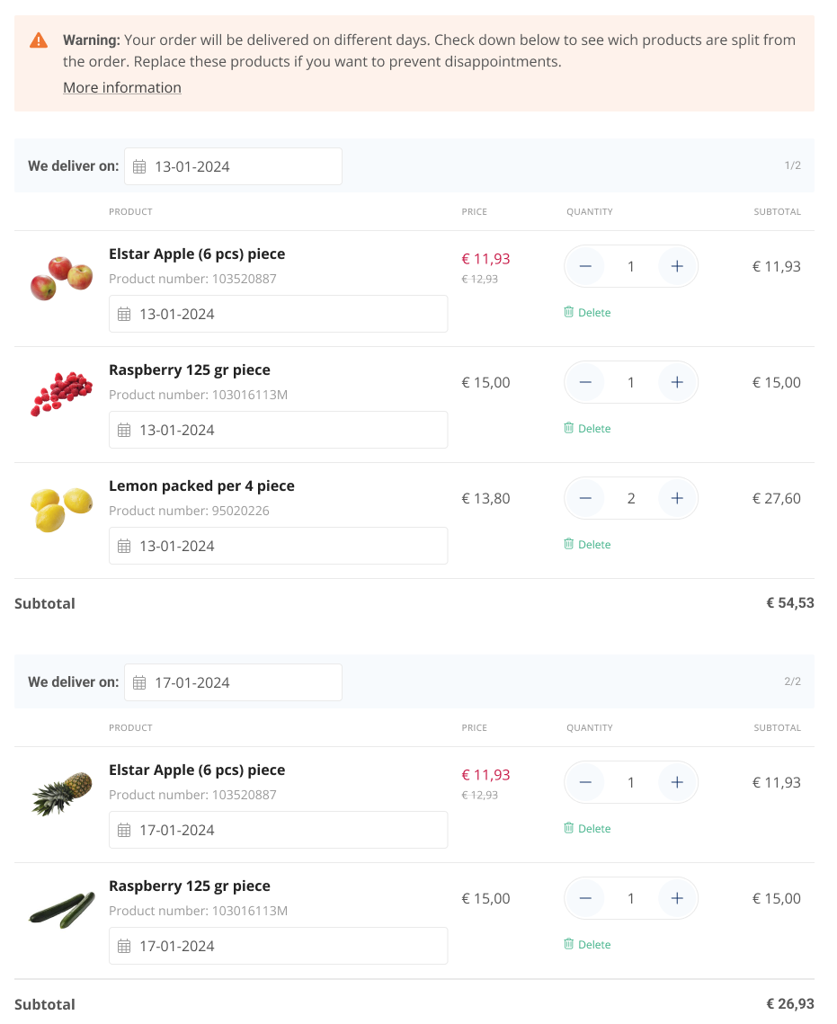 Change the sequence of the displayed product lines, based on delivery dates (see image below)