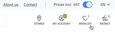 Products added to the wishlist are marked with an icon that is visible on both the product detail page (PDP) and the product listing page (PLP). By clicking the icon, you can toggle between adding or removing the product from the wish list.