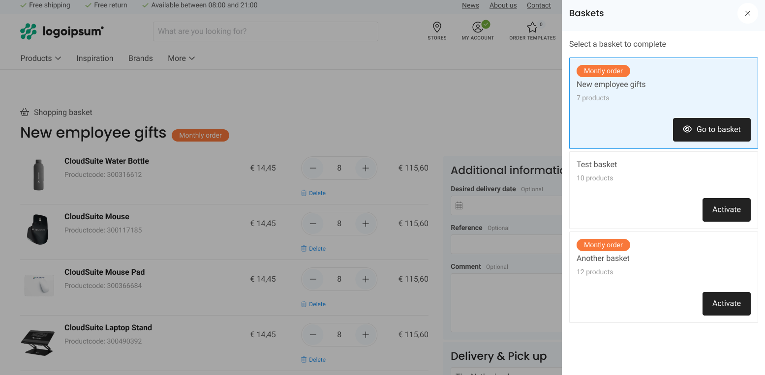 In a competitive eCommerce landscape, efficient order management is essential. The Multiple Baskets feature is all about efficiency: it simplifies the management of multiple (wholesale) orders, reducing the time and effort required to process them.