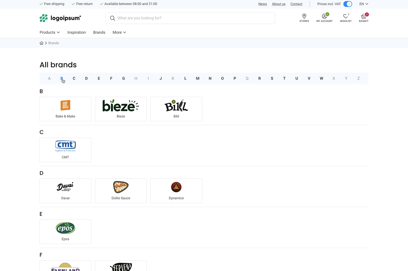 - Brands can have their own landing pages with filtering and comprehensive descriptions and images.