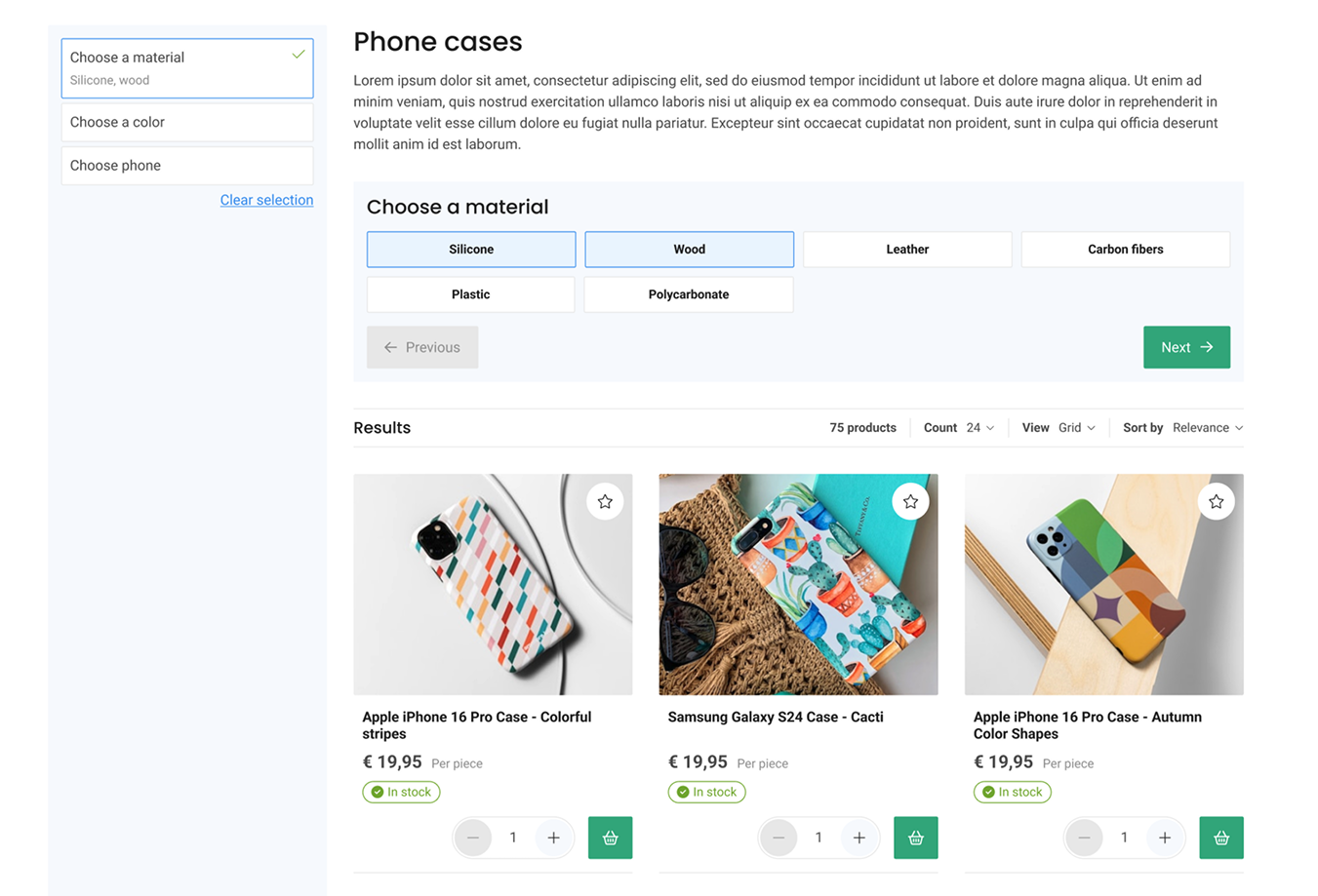 The Product Filter Wizard is a powerful tool to streamline your customer's journey to the right products. Your webshop visitors are guided step-by-step to the most suitable product results.