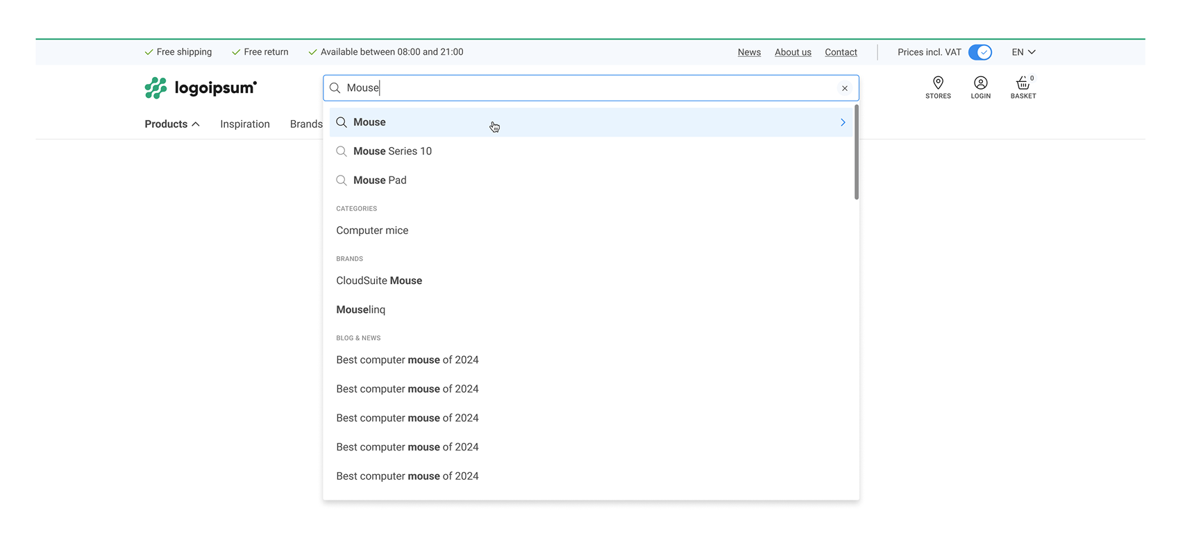 Search results will be presented based on a combination of ranking and relevance. With our additional Relevance and Recommendations Module, this can be configured based on brands and product attributes.
