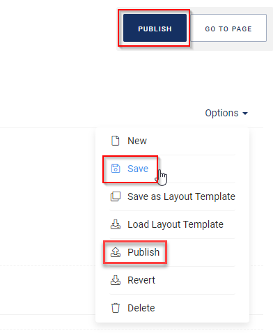 When you are done, select Save from the Options menu to save the page. Use the Publish button to publish the page online.