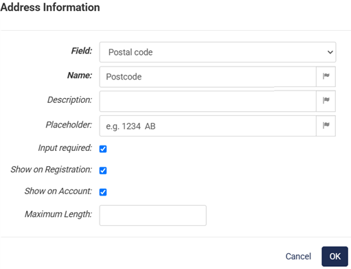 The Placeholder is where you can enter the prompt text for the field. This will be displayed on all registration and edit forms throughout the shop that use this field. If you have shops in different languages, you can translate your placeholder texts.