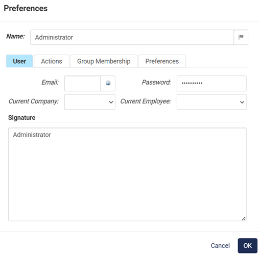 - In the CloudSuite App, click your user name (next to the CloudSuite logo) to open the Preferences. Or, if you are working in the desktop version of the App, select User > Preferences.