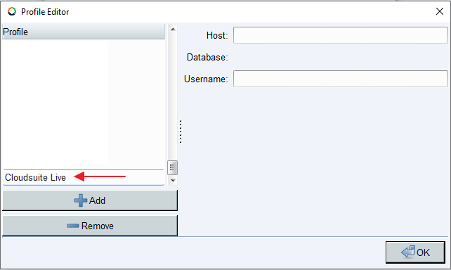 Edit the Host and Username, then click OK to save your changes. When selected in the login screen, the profile will now provide the appropriate default values.