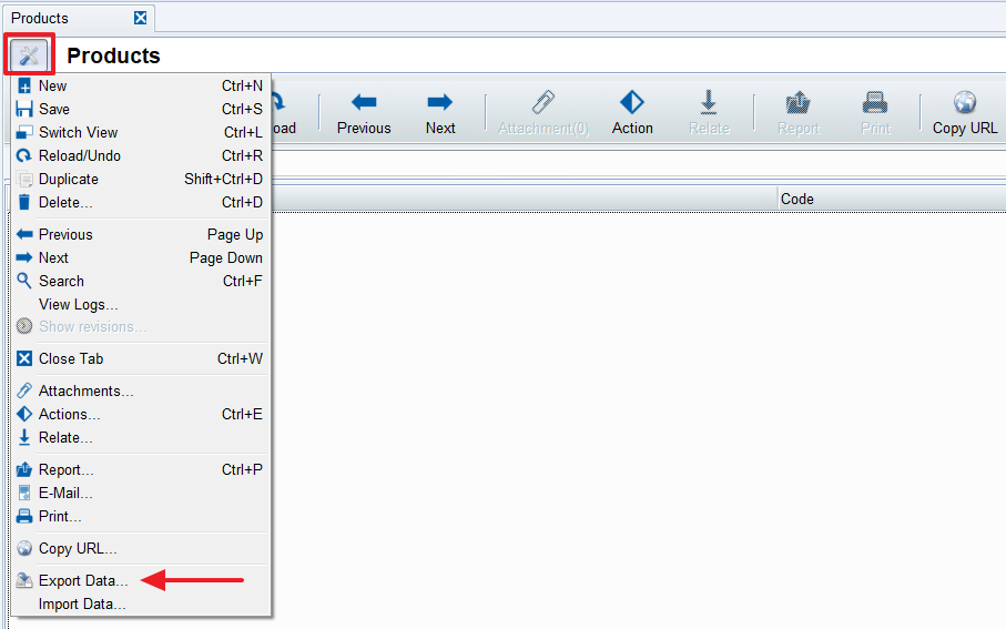 Entries that do no show the right-pointing arrow head can be directly selected for export. The data in these fields cannot be configured or opened so they only contain one type of data. For example, a product's code contains only the code.