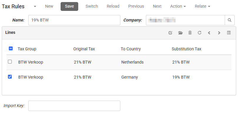 - Select for which Company the tax rule should be active.